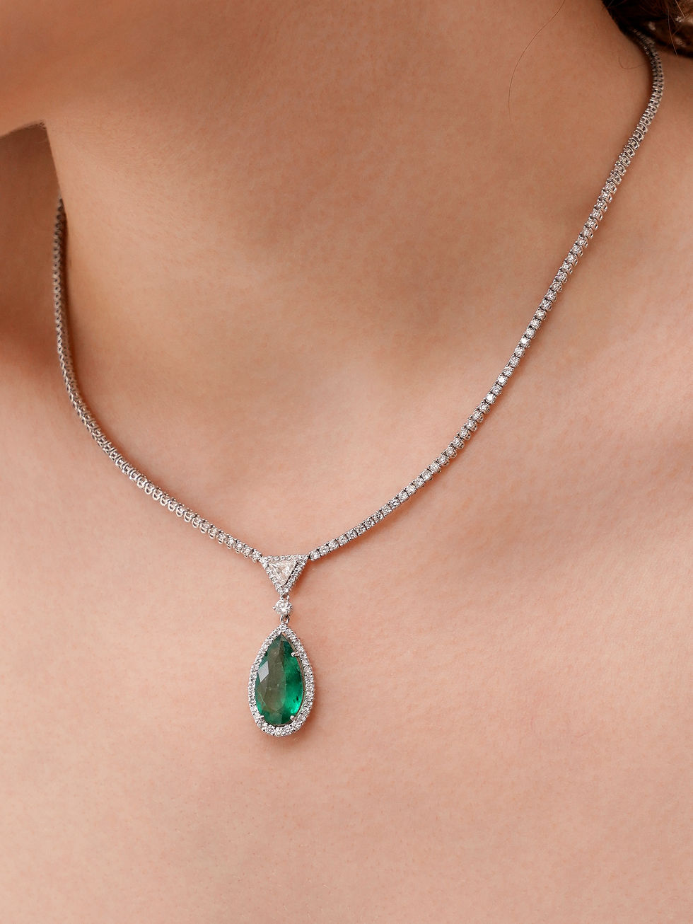Colar em Ouro Branco 18K com Diamantes e Esmeralda